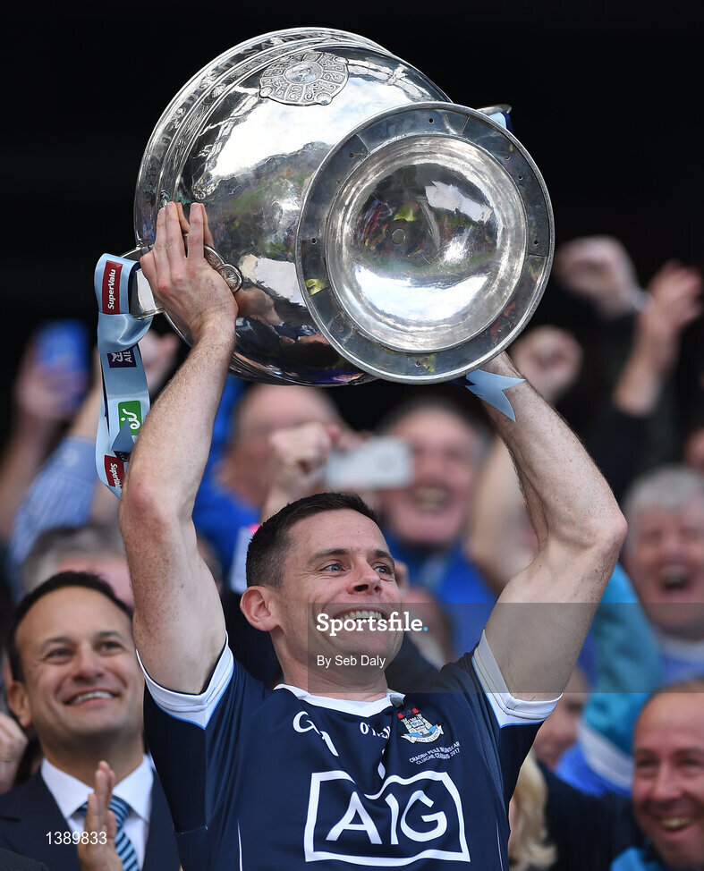 17 September 2017; Dublin captain Stephen Cluxton lifts the Sam Maguire cup after the GAA Football All-Ireland Senior Championship Final match between Dublin and Mayo at Croke Park in Dublin. Photo by Seb Daly/Sportsfile
