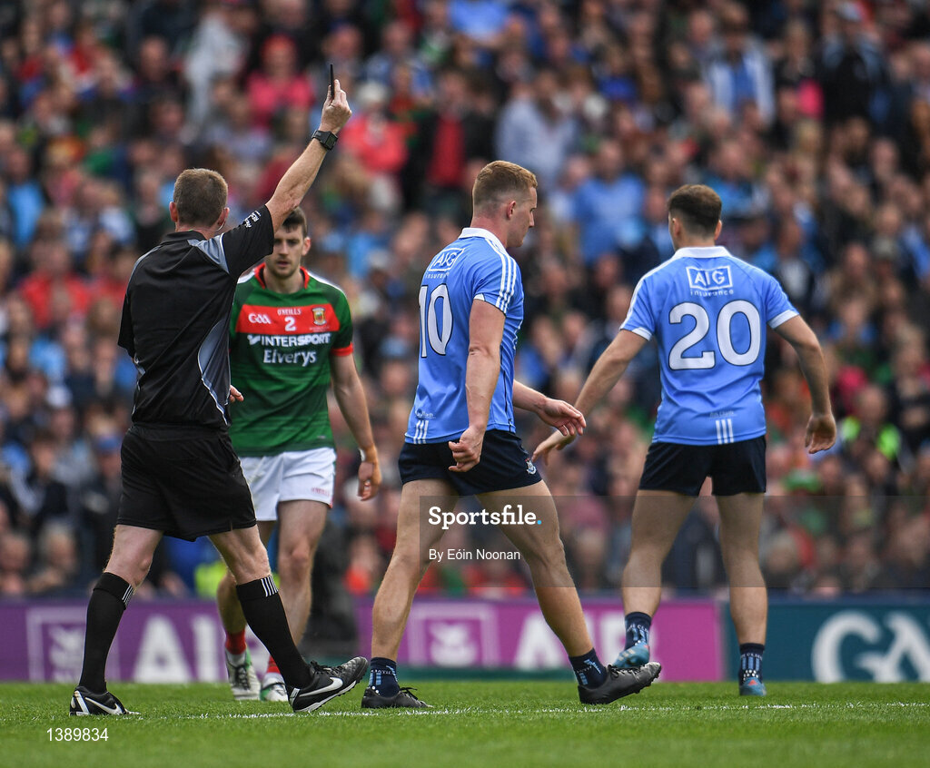 17 September 2017; Ciarán Kilkenny of Dublin is shown a black card during the GAA Football All-Ireland Senior Championship Final match between Dublin and Mayo at Croke Park in Dublin. Photo by Eóin Noonan/Sportsfile