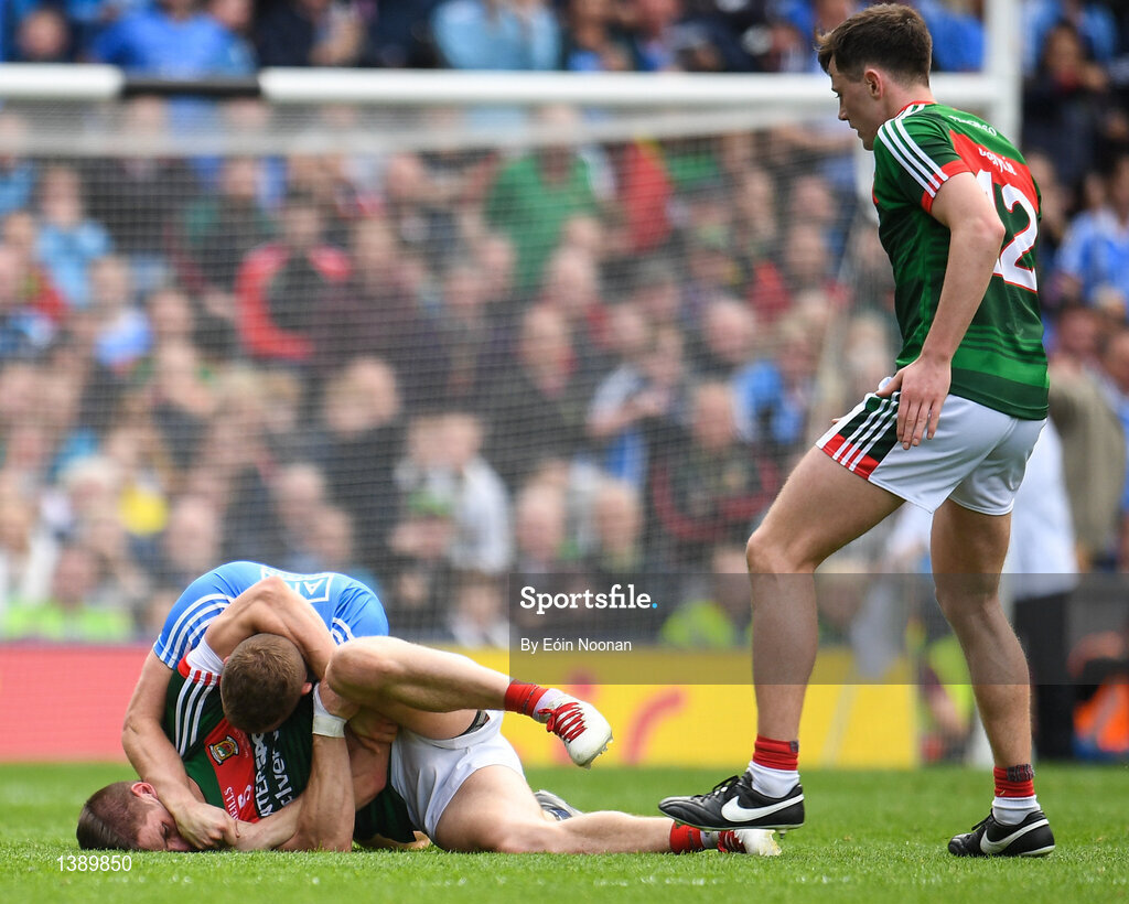 17 September 2017; Lee Keegan of Mayo tussles with Ciarán Kilkenny of Dublin during the GAA Football All-Ireland Senior Championship Final match between Dublin and Mayo at Croke Park in Dublin. Photo by Eóin Noonan/Sportsfile