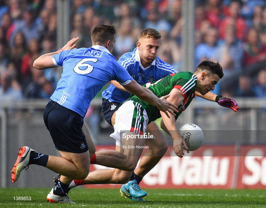 17 September 2017; Jason Doherty of Mayo in action against John Small and Jonny Cooper of Dublin during the GAA Football All-Ireland Senior Championship Final match between Dublin and Mayo at Croke Park in Dublin. Photo by Eóin Noonan/Sportsfile