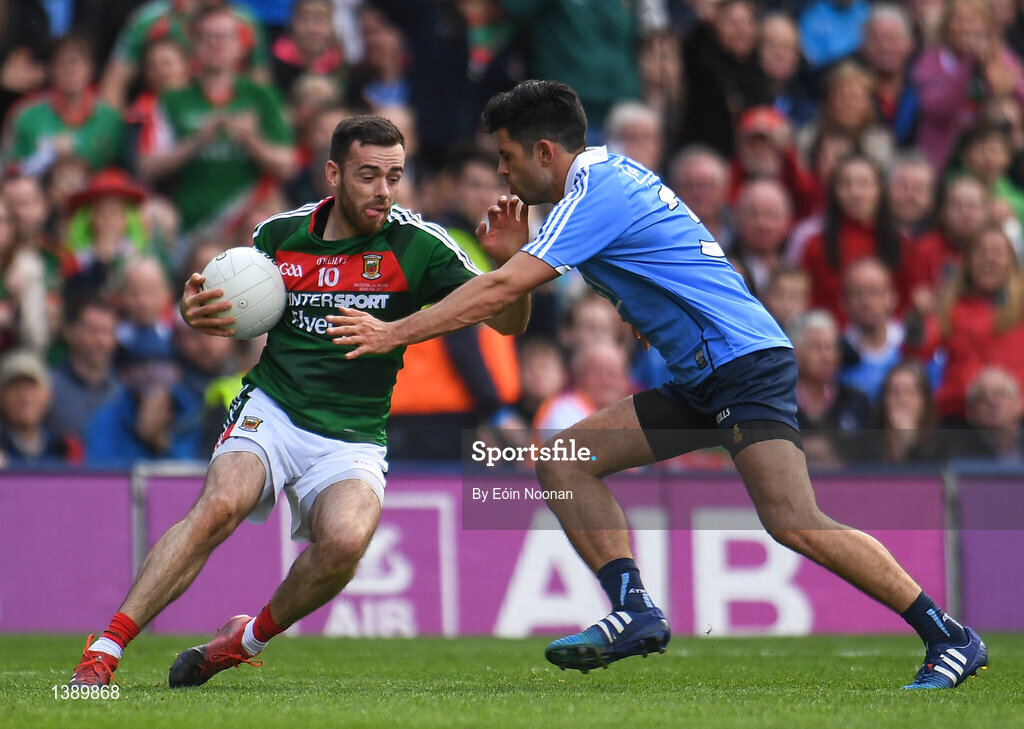 17 September 2017; Kevin McLoughlin of Mayo in action against Cian O'Sullivan of Dublin during the GAA Football All-Ireland Senior Championship Final match between Dublin and Mayo at Croke Park in Dublin. Photo by Eóin Noonan/Sportsfile