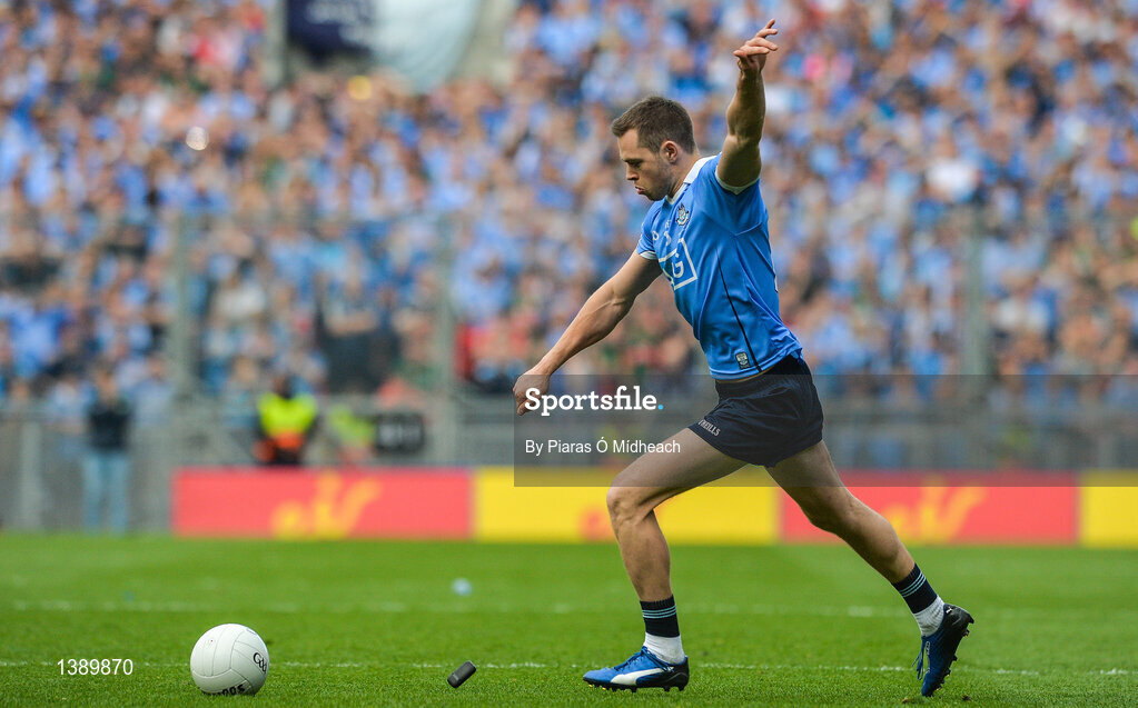 17 September 2017; Dean Rock of Dublin scores the winning point from a free late in injury time during the GAA Football All-Ireland Senior Championship Final match between Dublin and Mayo at Croke Park in Dublin. Photo by Piaras Ó Mídheach/Sportsfile