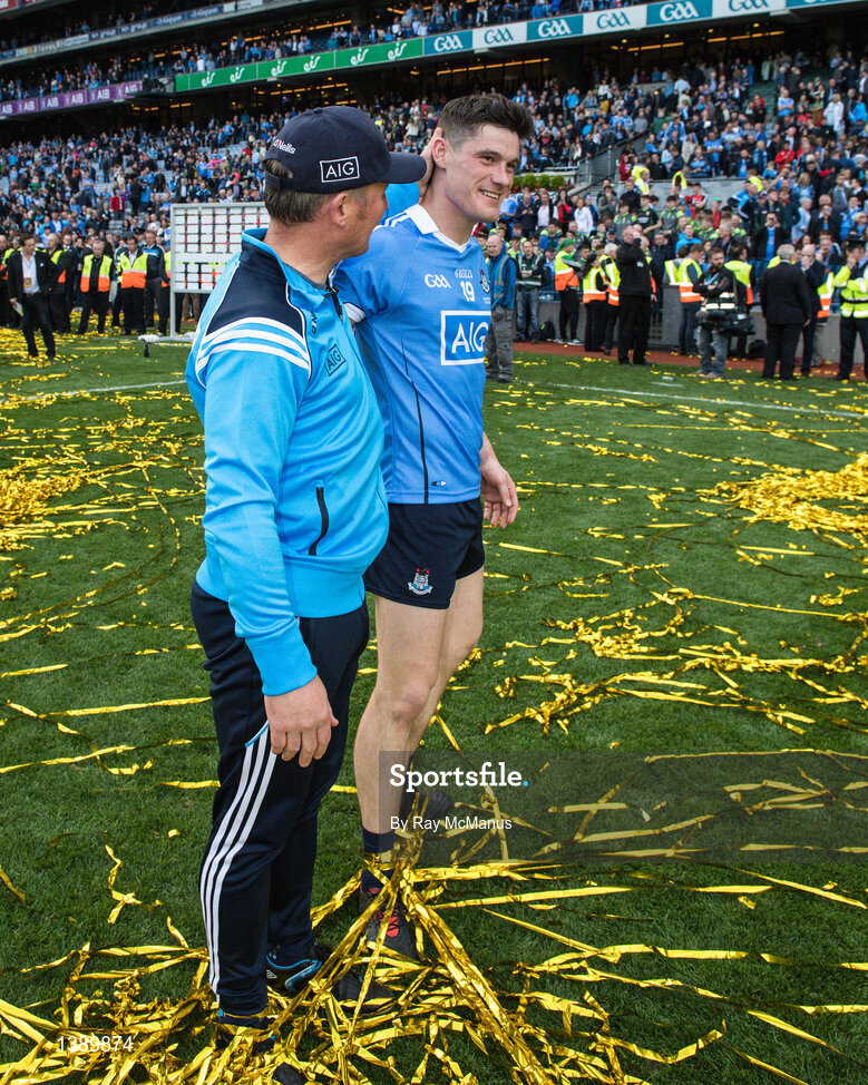 17 September 2017; Dublin manager Jim Gavin with Diarmuid Connolly after the GAA Football All-Ireland Senior Championship Final match between Dublin and Mayo at Croke Park in Dublin. Photo by Ray McManus/Sportsfile