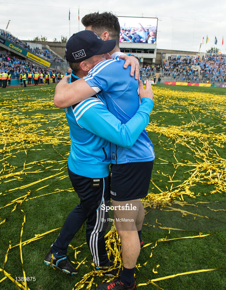 17 September 2017; Dublin manager Jim Gavin with Diarmuid Connolly after the GAA Football All-Ireland Senior Championship Final match between Dublin and Mayo at Croke Park in Dublin. Photo by Ray McManus/Sportsfile