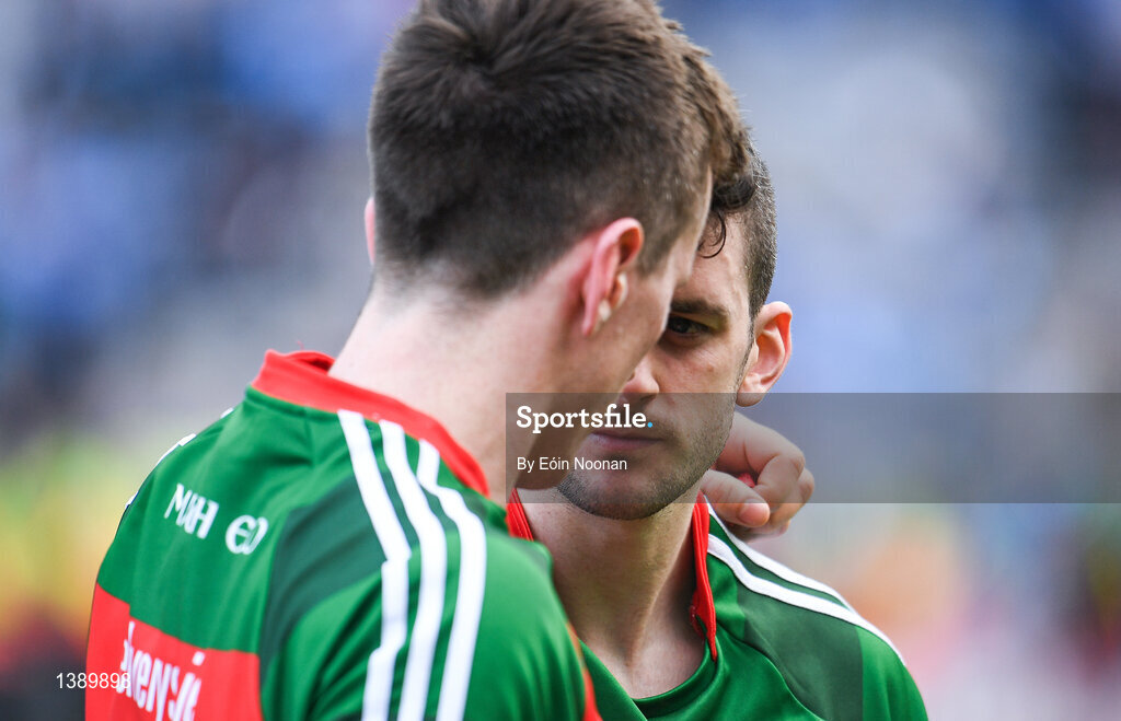 17 September 2017; Brendan Harrison of Mayo is consoled by team mate Cillian O'Connor, left, after the GAA Football All-Ireland Senior Championship Final match between Dublin and Mayo at Croke Park in Dublin. Photo by Eóin Noonan/Sportsfile