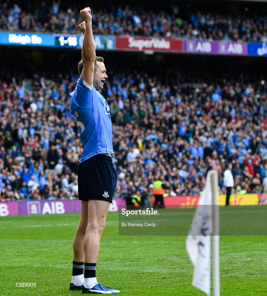 17 September 2017; Dean Rock of Dublin celebrates at the final whistle of the GAA Football All-Ireland Senior Championship Final match between Dublin and Mayo at Croke Park in Dublin. Photo by Ramsey Cardy/Sportsfile