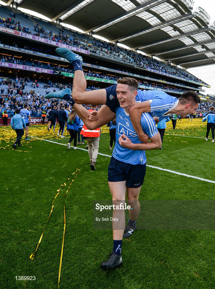 17 September 2017; Brian Fenton of Dublin carries teammate Niall Scully on his shoulders following their side's victory the GAA Football All-Ireland Senior Championship Final match between Dublin and Mayo at Croke Park in Dublin. Photo by Seb Daly/Sportsfile