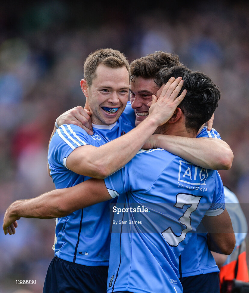 17 September 2017; Dublin players from left, Dean Rock, Diarmuid Connolly and Cian O'Sullivan celebrate following the GAA Football All-Ireland Senior Championship Final match between Dublin and Mayo at Croke Park in Dublin. Photo by Sam Barnes/Sportsfile