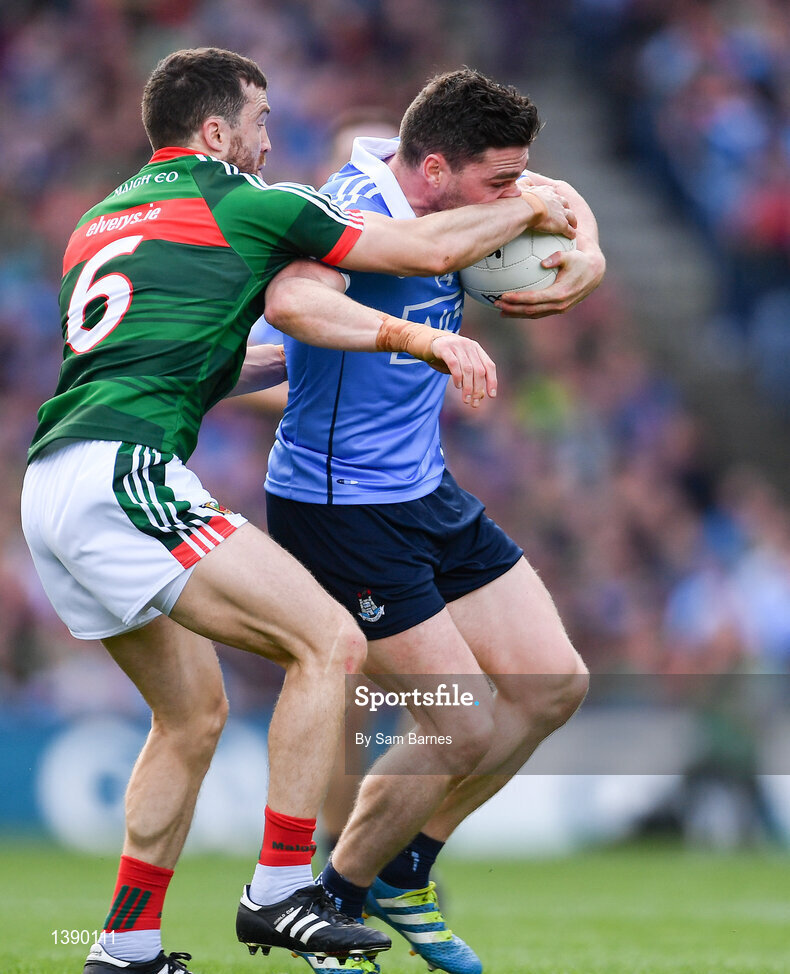 17 September 2017; Paddy Andrews of Dublin in action against Chris Barrett of Mayo during the GAA Football All-Ireland Senior Championship Final match between Dublin and Mayo at Croke Park in Dublin. Photo by Sam Barnes/Sportsfile