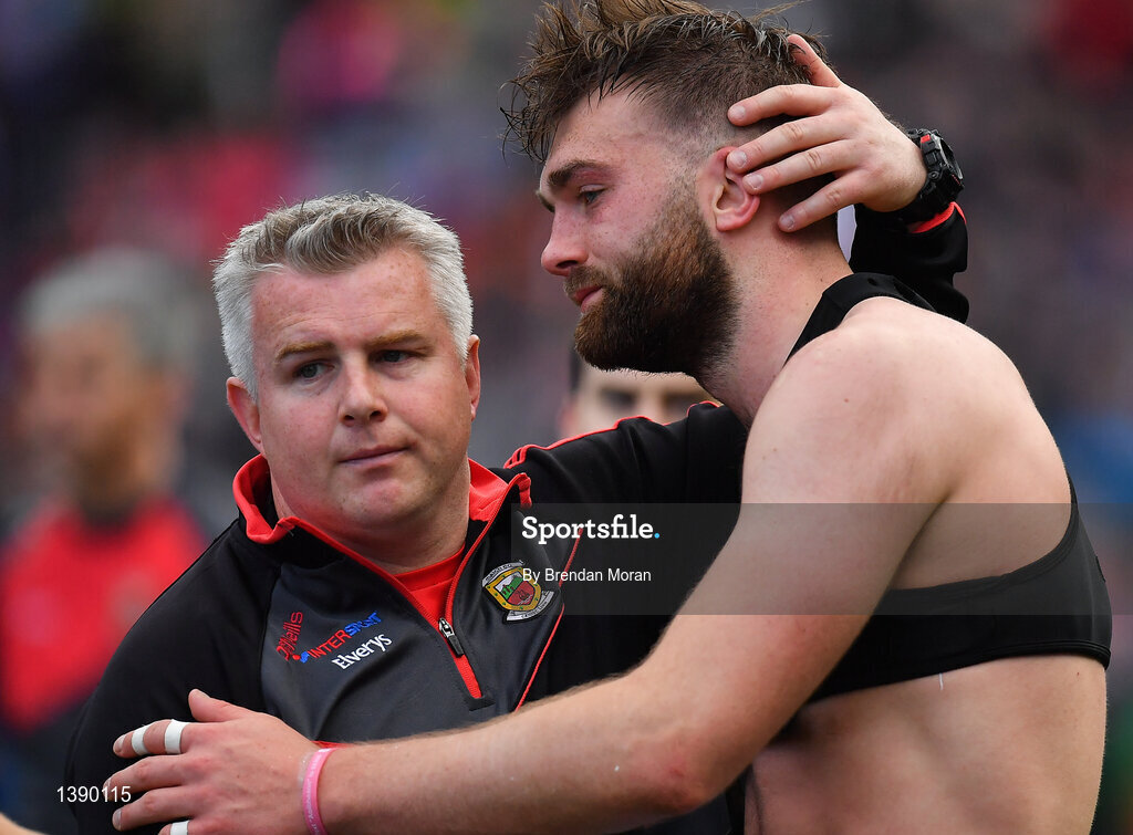 17 September 2017; Mayo manager Stephen Rochford, left, with Aidan O'Shea after the GAA Football All-Ireland Senior Championship Final match between Dublin and Mayo at Croke Park in Dublin. Photo by Brendan Moran/Sportsfile