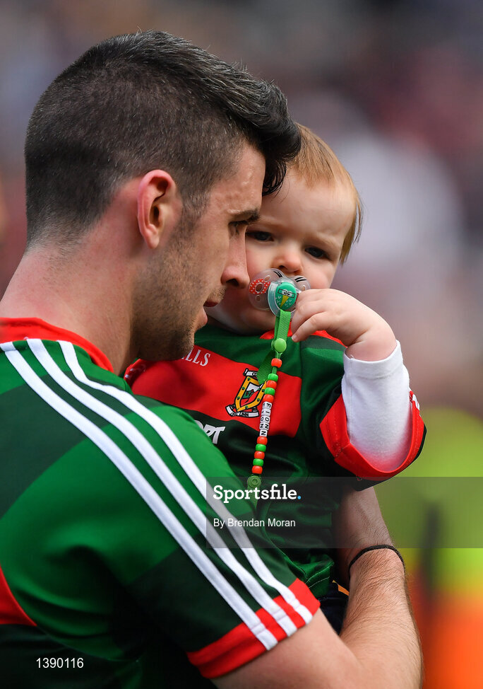 17 September 2017; Brendan Harrison of Mayo with his son Fionn after the GAA Football All-Ireland Senior Championship Final match between Dublin and Mayo at Croke Park in Dublin. Photo by Brendan Moran/Sportsfile