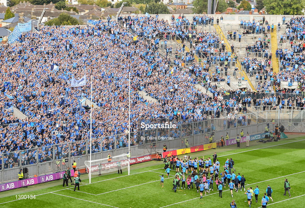 17 September 2017; Dublin players celebrate with the Sam Maguire Cup after the GAA Football All-Ireland Senior Championship Final match between Dublin and Mayo at Croke Park in Dublin. Photo by Daire Brennan/Sportsfile
