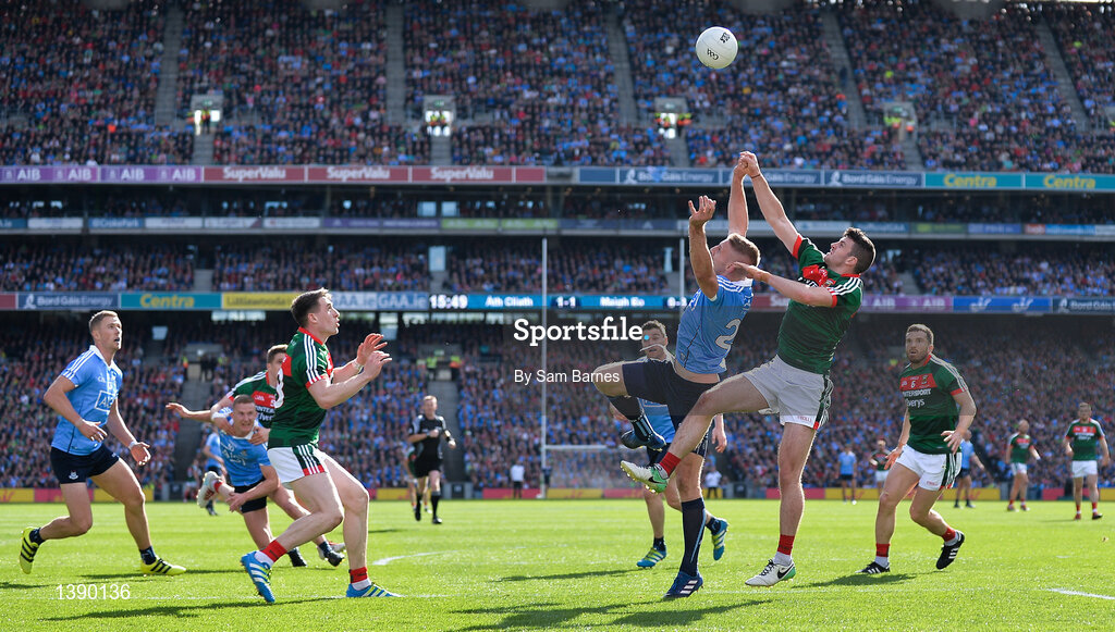 17 September 2017; Paul Flynn of Dublin in action against Brendan Harrison of Mayo during the GAA Football All-Ireland Senior Championship Final match between Dublin and Mayo at Croke Park in Dublin. Photo by Sam Barnes/Sportsfile