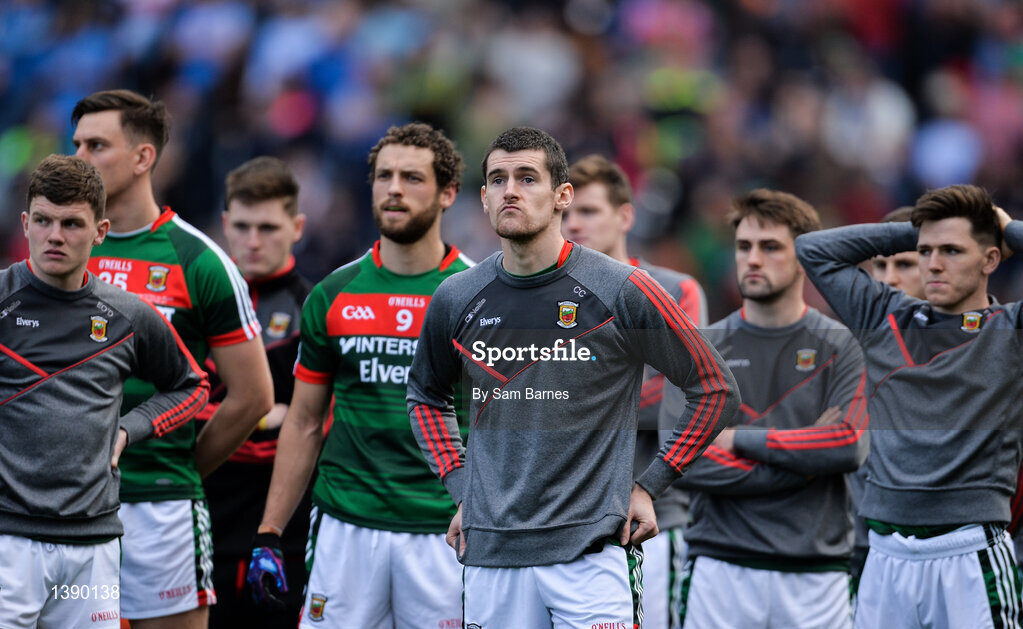17 September 2017; Mayo players, including Caolan Crowe, centre, dejected following the GAA Football All-Ireland Senior Championship Final match between Dublin and Mayo at Croke Park in Dublin. Photo by Sam Barnes/Sportsfile