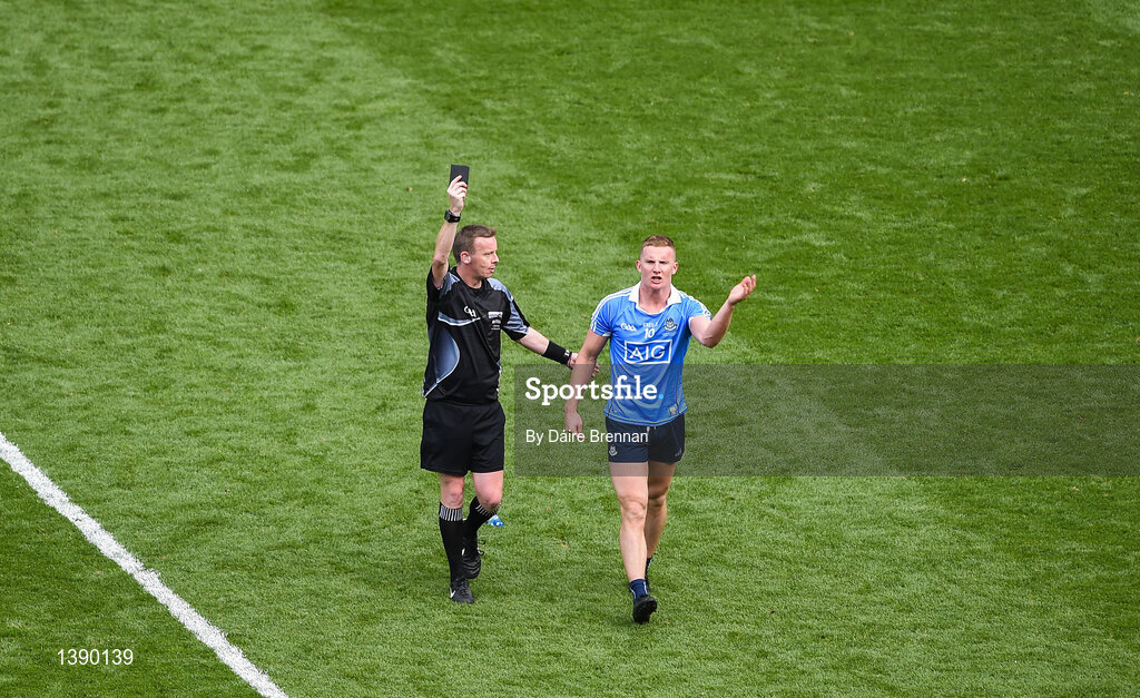 17 September 2017; Ciarán Kilkenny of Dublin receives a black card near the end of the GAA Football All-Ireland Senior Championship Final match between Dublin and Mayo at Croke Park in Dublin. Photo by Daire Brennan/Sportsfile