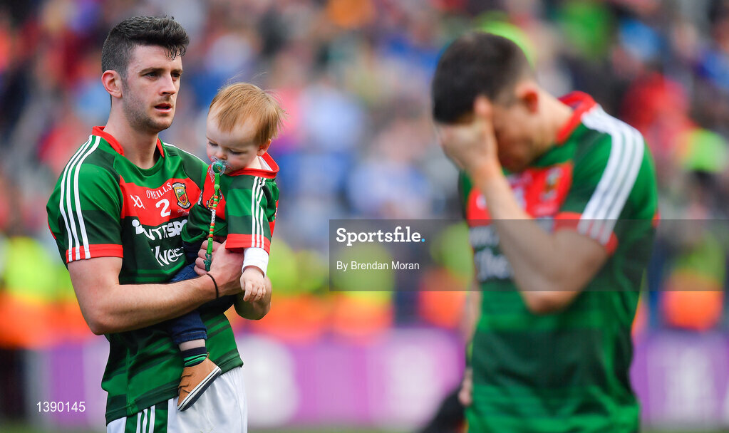 17 September 2017; Brendan Harrison of Mayo with his son Fionn after the GAA Football All-Ireland Senior Championship Final match between Dublin and Mayo at Croke Park in Dublin. Photo by Brendan Moran/Sportsfile