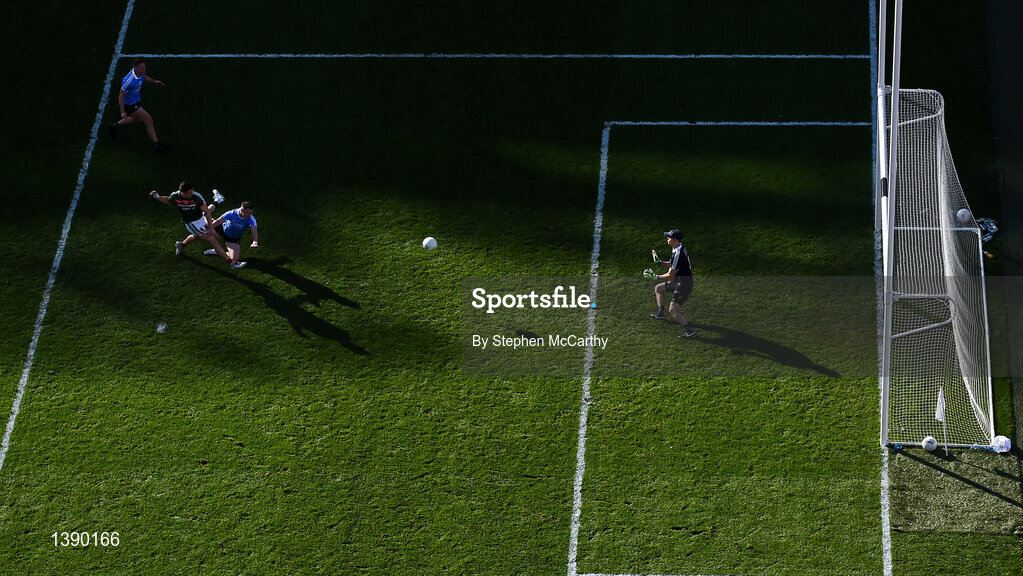 17 September 2017; Lee Keegan of Mayo shoots to score his side's goal past Dublin goalkeeper Stephen Cluxton during the GAA Football All-Ireland Senior Championship Final match between Dublin and Mayo at Croke Park in Dublin. Photo by Stephen McCarthy/Sportsfile