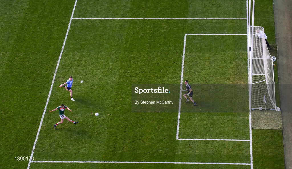 17 September 2017; Jason Doherty of Mayo has a shot on goal which was subsequently saved by Dublin goalkeeper Stephen Cluxton during the GAA Football All-Ireland Senior Championship Final match between Dublin and Mayo at Croke Park in Dublin. Photo by Stephen McCarthy/Sportsfile
