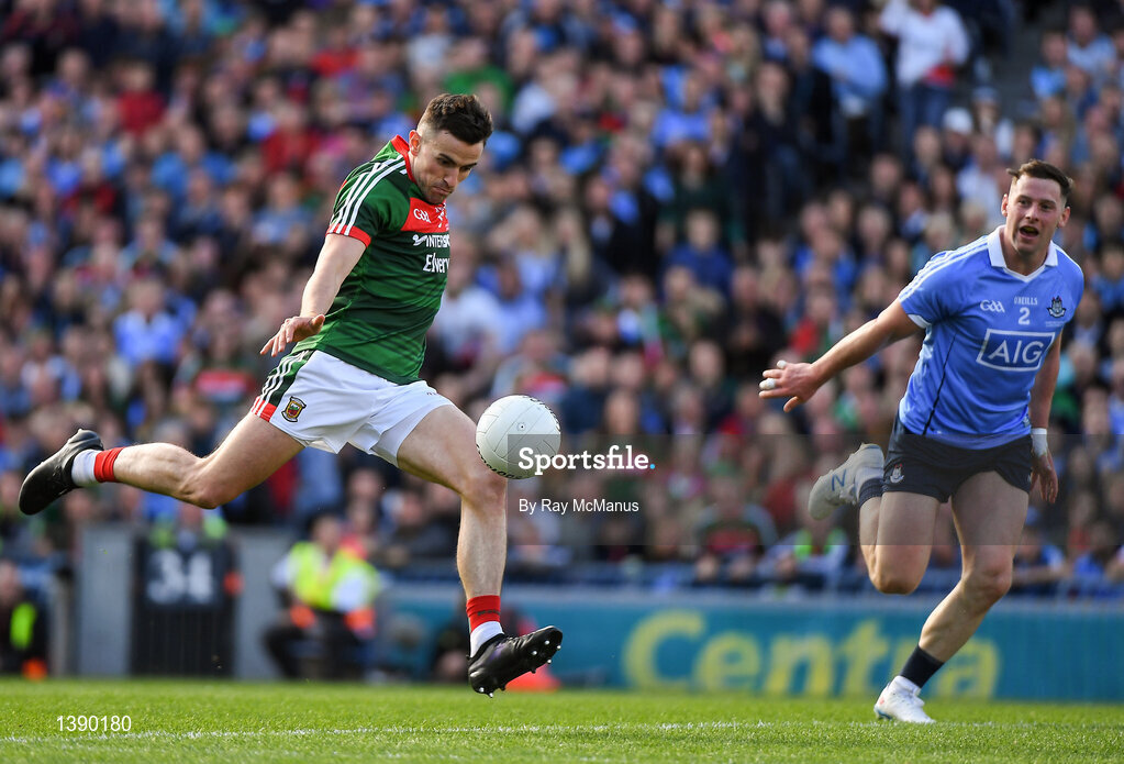 17 September 2017; Jason Doherty of Mayo fires in a shot past Philip McMahon of Dublin only to have it saved by goalkeeper Stephen Cluxton during the GAA Football All-Ireland Senior Championship Final match between Dublin and Mayo at Croke Park in Dublin. Photo by Ray McManus/Sportsfile