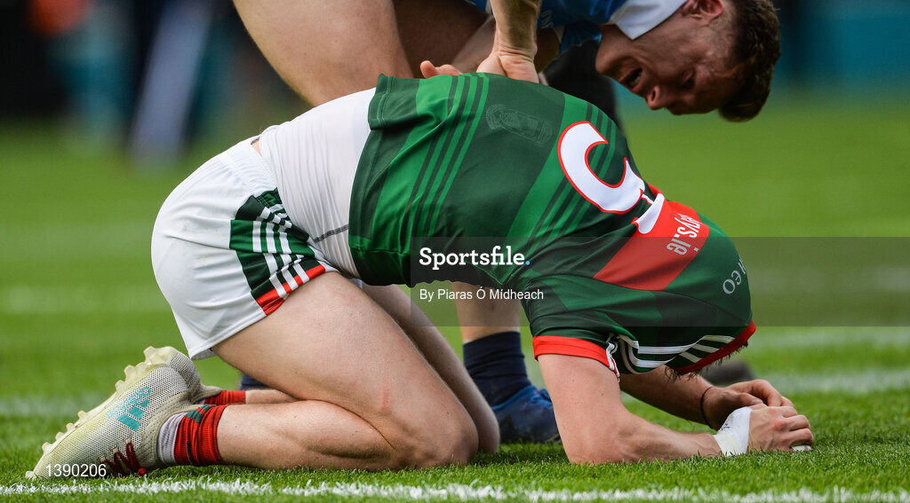 17 September 2017; Lee Keegan of Mayo is consoled by Paul Flynn of Dublin after the GAA Football All-Ireland Senior Championship Final match between Dublin and Mayo at Croke Park in Dublin. Photo by Piaras Ó Mídheach/Sportsfile