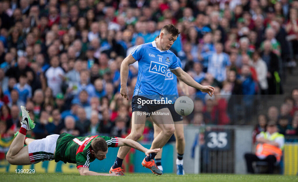 17 September 2017; Con O'Callaghan of Dublin evades the tackle of Colm Boyle of Mayo on his way to scoring his side's goal in the first minute of the GAA Football All-Ireland Senior Championship Final match between Dublin and Mayo at Croke Park in Dublin. Photo by Ray McManus/Sportsfile