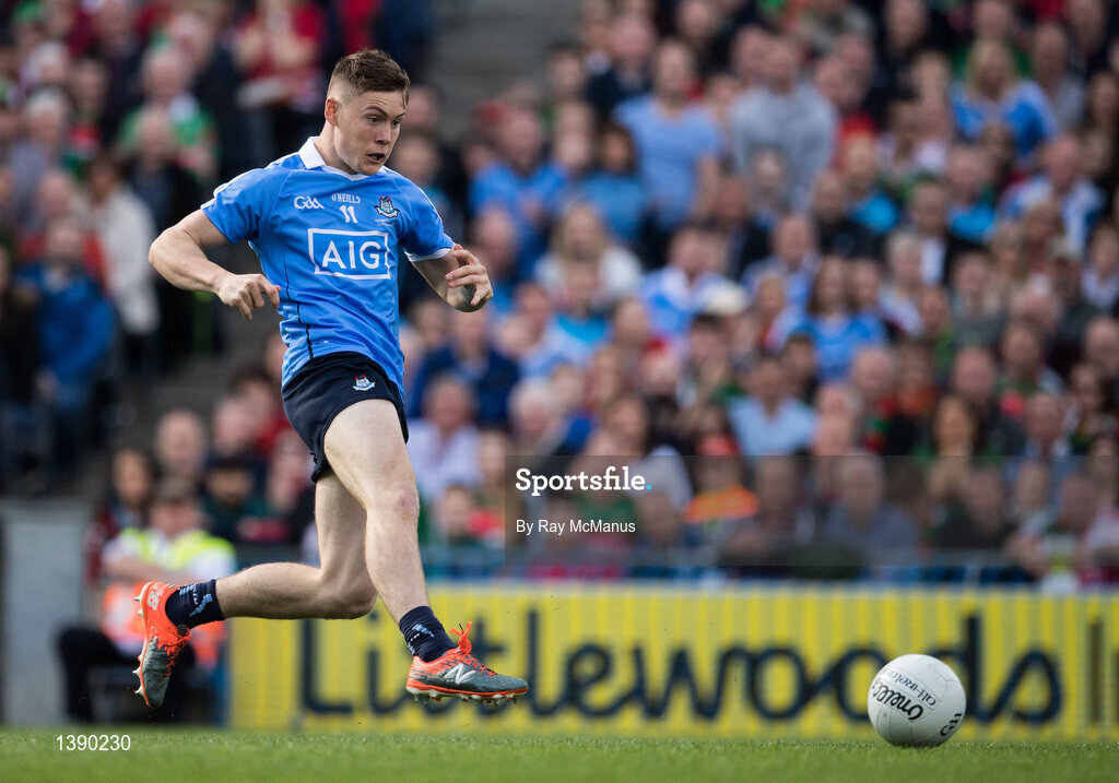 17 September 2017; Con O'Callaghan of Dublin scores his side's goal in the first minute of the GAA Football All-Ireland Senior Championship Final match between Dublin and Mayo at Croke Park in Dublin. Photo by Ray McManus/Sportsfile