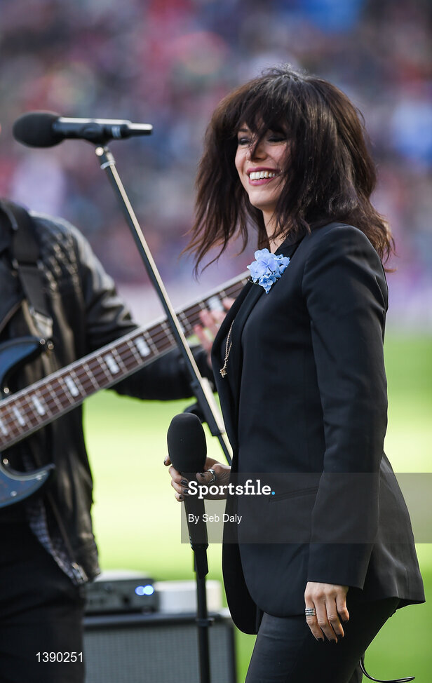17 September 2017; Imelda May performs during the GAA Football All-Ireland Senior Championship Final match between Dublin and Mayo at Croke Park in Dublin. Photo by Seb Daly/Sportsfile