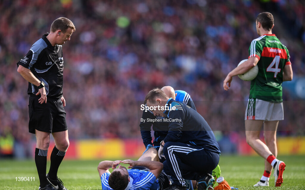 17 September 2017; Jack McCaffrey of Dublin is treated for an injury during the GAA Football All-Ireland Senior Championship Final match between Dublin and Mayo at Croke Park in Dublin. Photo by Stephen McCarthy/Sportsfile