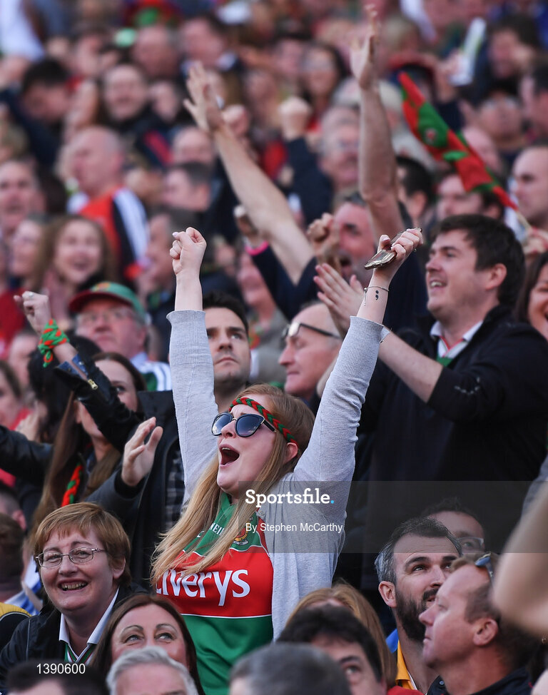 17 September 2017; Mayo supporters celebrate during the GAA Football All-Ireland Senior Championship Final match between Dublin and Mayo at Croke Park in Dublin. Photo by Stephen McCarthy/Sportsfile
