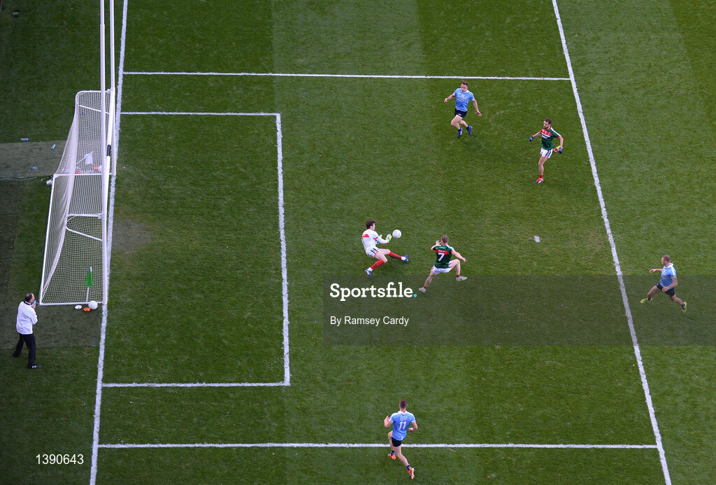 17 September 2017; Mayo goalkeeper David Clarke saves a shot from Paul Mannion of Dublin during the GAA Football All-Ireland Senior Championship Final match between Dublin and Mayo at Croke Park in Dublin. Photo by Ramsey Cardy/Sportsfile