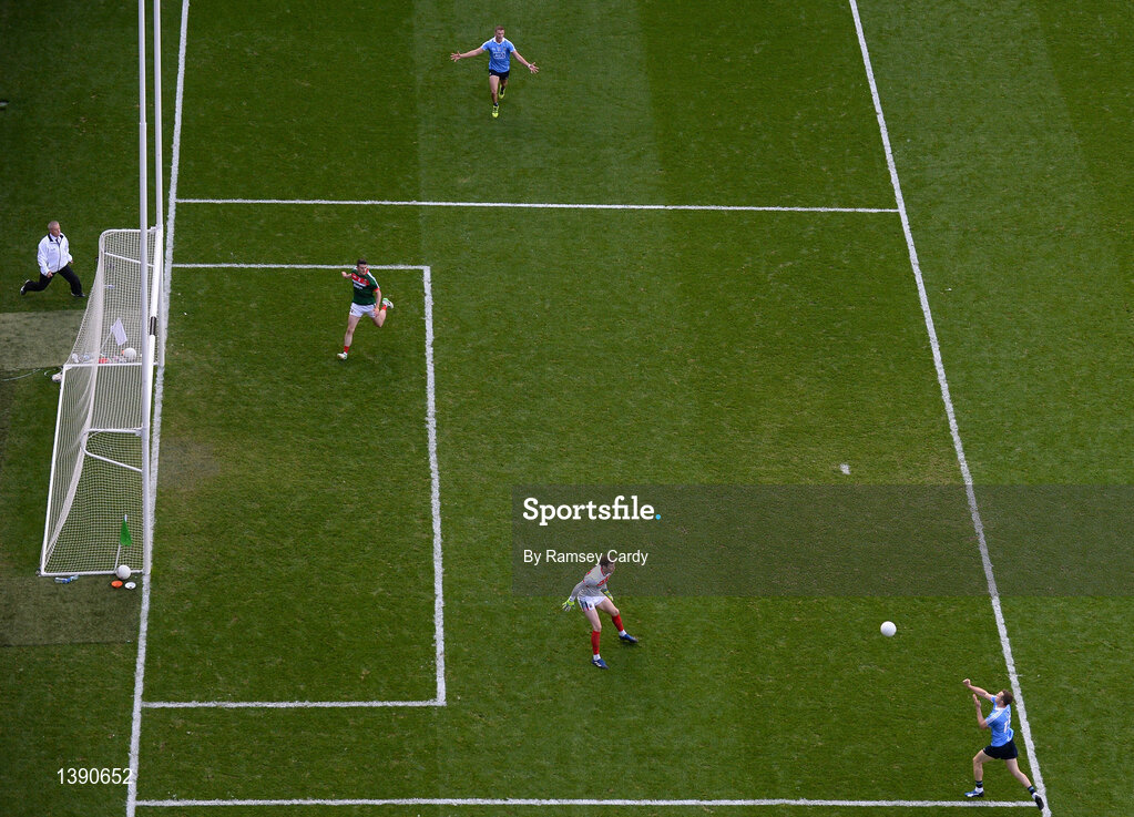 17 September 2017; Dean Rock of Dublin fists a point in the second half during the GAA Football All-Ireland Senior Championship Final match between Dublin and Mayo at Croke Park in Dublin. Photo by Ramsey Cardy/Sportsfile