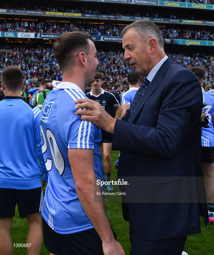 17 September 2017; Cormac Costello of Dublin celebrates with his Dad, Dublin County Board CEO John following the GAA Football All-Ireland Senior Championship Final match between Dublin and Mayo at Croke Park in Dublin. Photo by Ramsey Cardy/Sportsfile