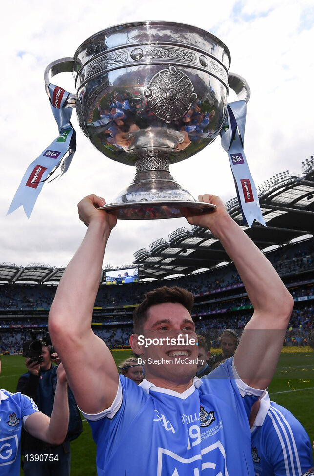 17 September 2017; Diarmuid Connolly of Dublin celebrates with the Sam Maguire Cup following the GAA Football All-Ireland Senior Championship Final match between Dublin and Mayo at Croke Park in Dublin. Photo by Stephen McCarthy/Sportsfile