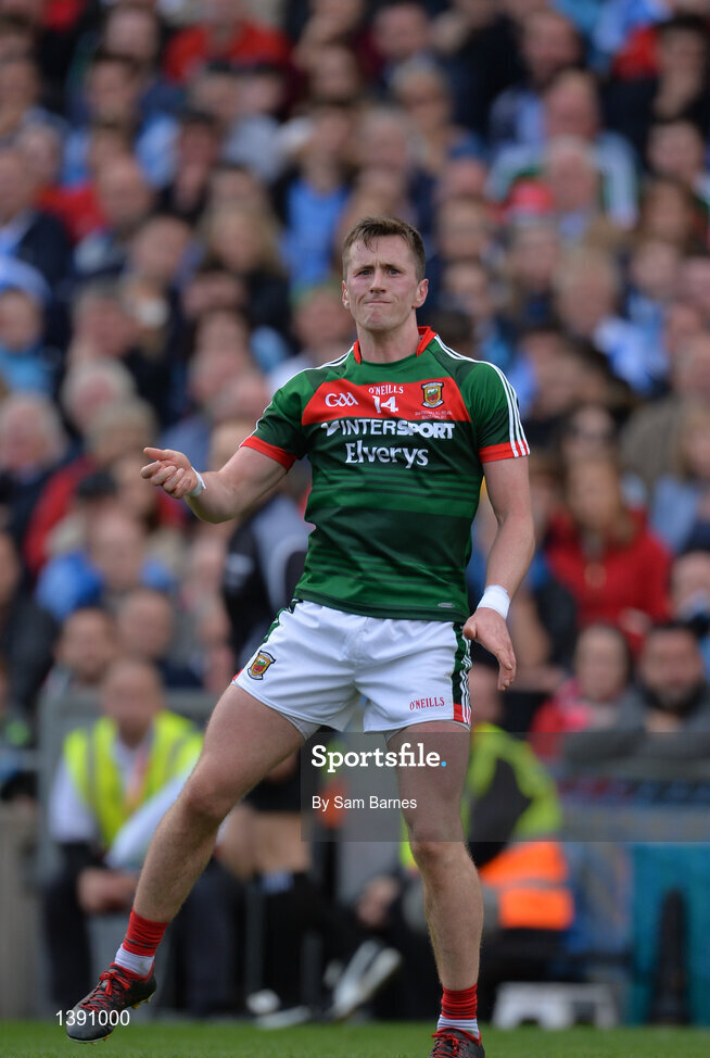 17 September 2017; Cillian O'Connor of Mayo reacts after missing a free during the GAA Football All-Ireland Senior Championship Final match between Dublin and Mayo at Croke Park in Dublin. Photo by Sam Barnes/Sportsfile