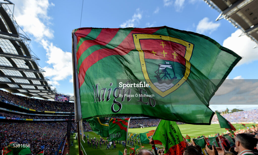 17 September 2017; A Mayo supporter waves a flag before the GAA Football All-Ireland Senior Championship Final match between Dublin and Mayo at Croke Park in Dublin. Photo by Piaras Ó Mídheach/Sportsfile
