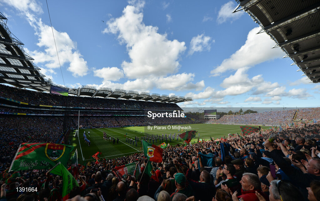 17 September 2017; A general view of the pre-match parade before the GAA Football All-Ireland Senior Championship Final match between Dublin and Mayo at Croke Park in Dublin. Photo by Piaras Ó Mídheach/Sportsfile