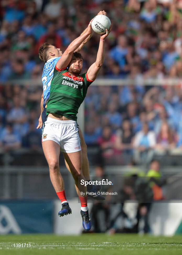 17 September 2017; Aidan O'Shea of Mayo in action against Paul Flynn of Dublin during the GAA Football All-Ireland Senior Championship Final match between Dublin and Mayo at Croke Park in Dublin. Photo by Piaras Ó Mídheach/Sportsfile
