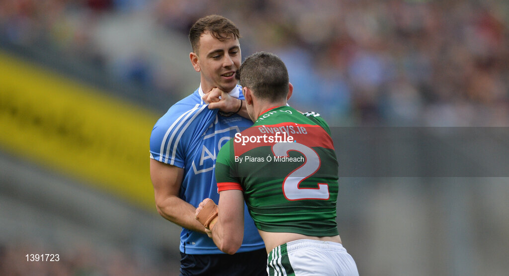 17 September 2017; Brendan Harrison of Mayo tussles with Cormac Costello of Dublin during the GAA Football All-Ireland Senior Championship Final match between Dublin and Mayo at Croke Park in Dublin. Photo by Piaras Ó Mídheach/Sportsfile