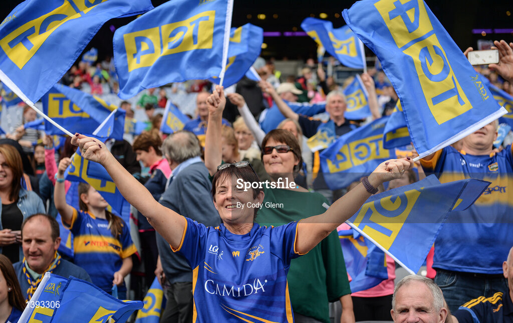 24 September 2017; Tipperary supporters during the TG4 Ladies Football All-Ireland Intermediate Championship Final match between Tipperary and Tyrone at Croke Park in Dublin. Photo by Cody Glenn/Sportsfile