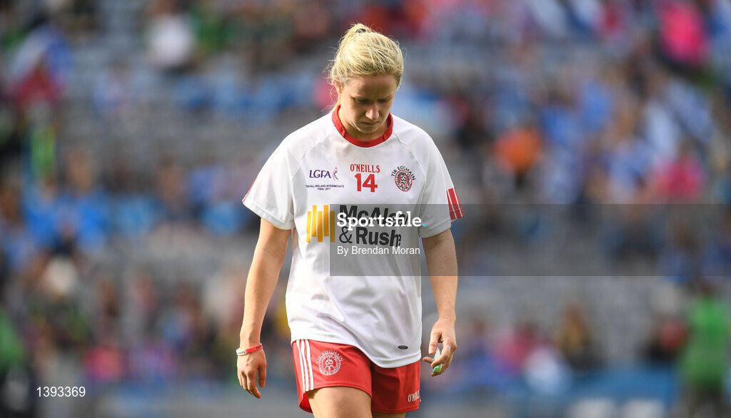 24 September 2017; A dejected Gemma Begley of Tyrone after the TG4 Ladies Football All-Ireland Intermediate Championship Final match between Tipperary and Tyrone at Croke Park in Dublin. Photo by Brendan Moran/Sportsfile