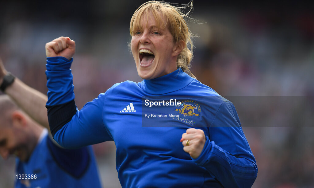 24 September 2017; Tipperary selector and former Cork football goalkeeper Elaine Harte celebrates after during the TG4 Ladies Football All-Ireland Intermediate Championship Final match between Tipperary and Tyrone at Croke Park in Dublin. Photo by Brendan Moran/Sportsfile
