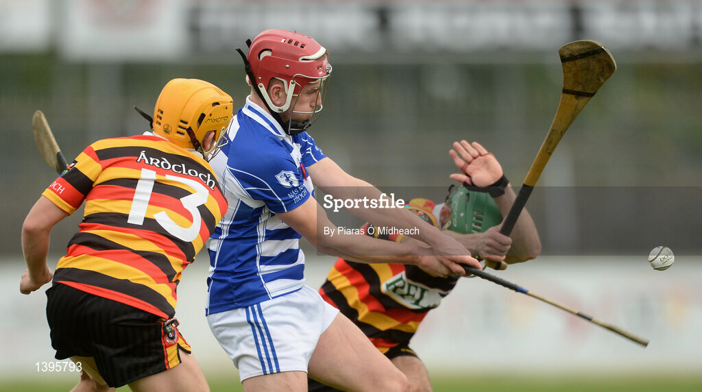 1 October 2017; Seán Gainey of Naas in action against Niall Delahunt, left, and Tony Spain of Ardclough during the Kildare County Senior Hurling Championship Final match between Ardclough and Naas at St Conleth's Park in Newbridge, Co. Kildare. Photo by Piaras Ó Mídheach/Sportsfile