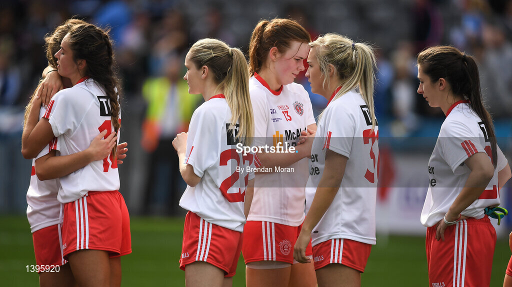 24 September 2017; Tyrone players shake hands with each other after the TG4 Ladies Football All-Ireland Intermediate Championship Final match between Tipperary and Tyrone at Croke Park in Dublin. Photo by Brendan Moran/Sportsfile