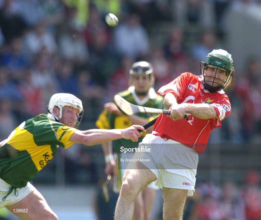 16 May 2004; Jerry O'Connor, Cork, in action against James McCarthy, Kerry. Guinness Munster Senior Hurling Championship, Cork v Kerry, Pairc Ui Chaoimh, Cork. Picture credit; Brendan Moran / SPORTSFILE