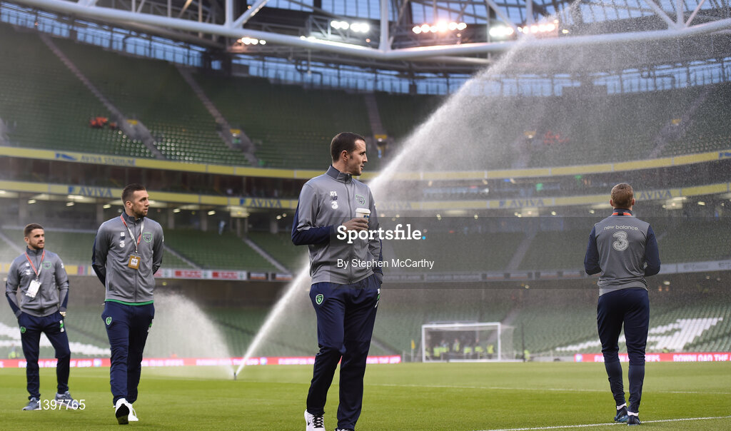 6 October 2017; Republic of Ireland players, from left, Robbie Brady, Shane Duffy, John O'Shea and James McClean prior to the FIFA World Cup Qualifier Group D match between Republic of Ireland and Moldova at Aviva Stadium in Dublin. Photo by Stephen McCarthy/Sportsfile