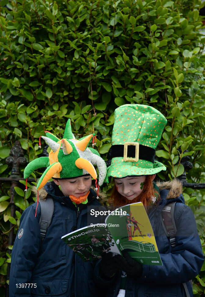6 October 2017; Republic of Ireland supporters, Cathal Woods, age 9 and James Cromb, age 8, from Bettystown, Co Meath study the match programme, prior to the FIFA World Cup Qualifier Group D match between Republic of Ireland and Moldova at Aviva Stadium in Dublin. Photo by Cody Glenn/Sportsfile
