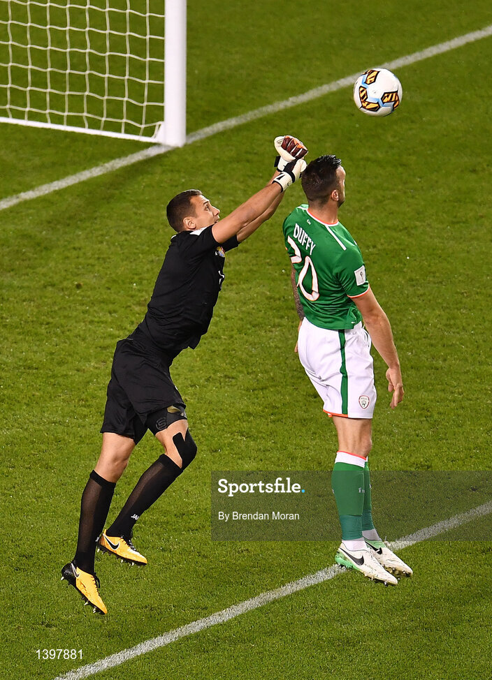 6 October 2017; Shane Duffy of Republic of Ireland in action against Ilie Cebanu of Moldova during the FIFA World Cup Qualifier Group D match between Republic of Ireland and Moldova at Aviva Stadium in Dublin. Photo by Brendan Moran/Sportsfile