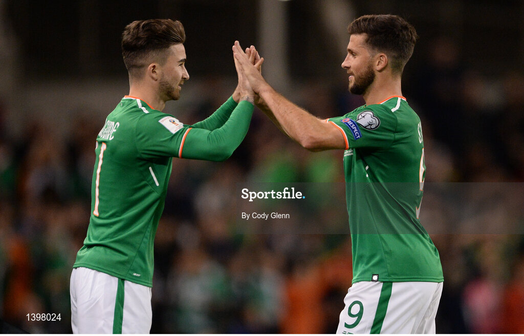 6 October 2017; Sean Maguire of Republic of Ireland make his way onto the pitch in place of Shane Long during the FIFA World Cup Qualifier Group D match between Republic of Ireland and Moldova at Aviva Stadium in Dublin. Photo by Cody Glenn/Sportsfile