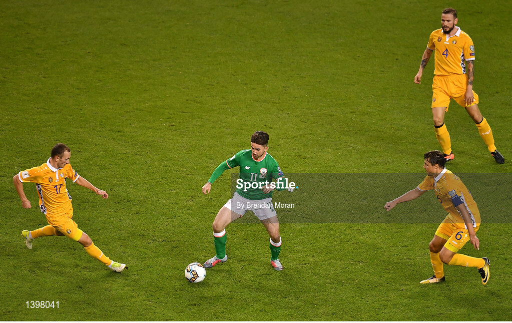 6 October 2017; Sean Maguire of Republic of Ireland in action against Moldova during the FIFA World Cup Qualifier Group D match between Republic of Ireland and Moldova at Aviva Stadium in Dublin. Photo by Brendan Moran/Sportsfile