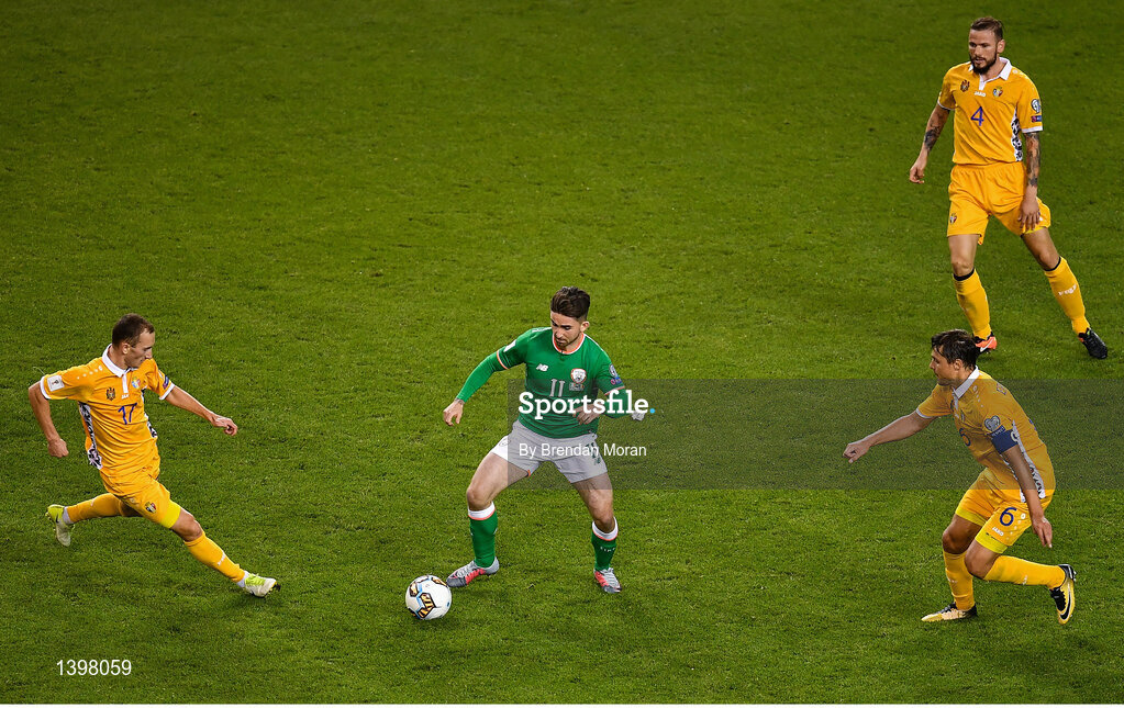 6 October 2017; Sean Maguire of Republic of Ireland in action against Moldova during the FIFA World Cup Qualifier Group D match between Republic of Ireland and Moldova at Aviva Stadium in Dublin. Photo by Brendan Moran/Sportsfile